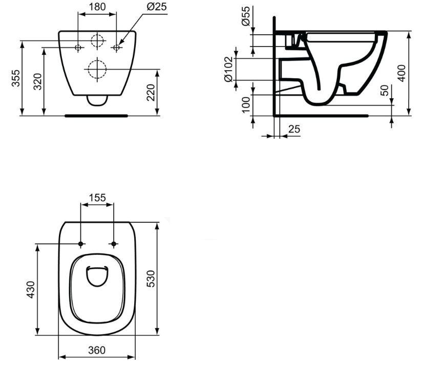 Pre montáž závesného WC s pripojovacou roztečou 180 mm alebo 230 mm