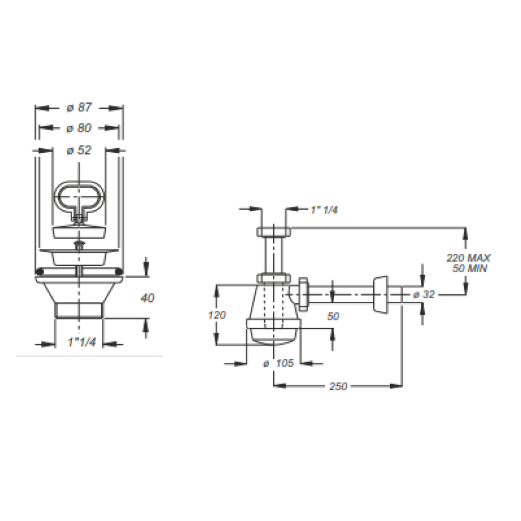 AQUALINE - Sifón pre výlevku, nerez výpusť 80, zátka s uchom, DN32, biela (WEH070)