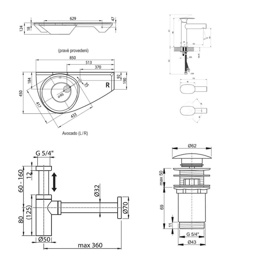 - vhodné pre umývadlá s prepadom a odtokom Ø 46 mm