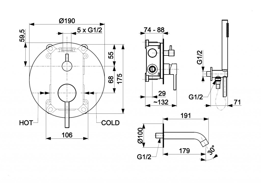 | Počet striekaní s rukoväťou sprchy | 1 |