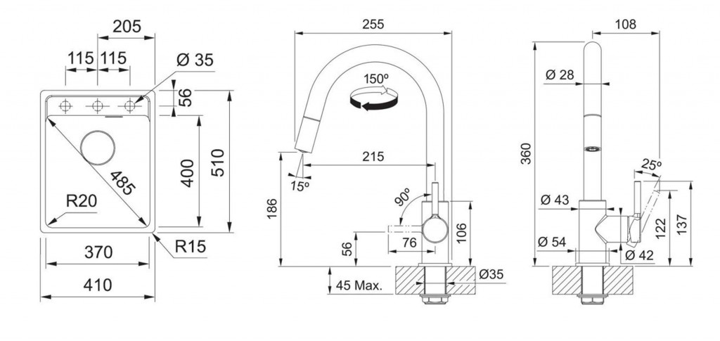 - sifón pre úsporu miesta 6/4" s odbočkou na umývačku
