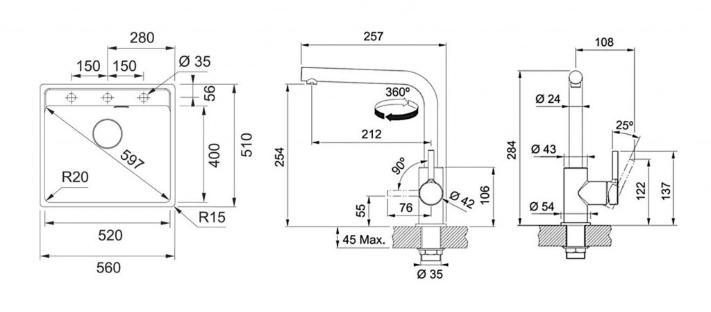 - sifón pre úsporu miesta 6/4" s odbočkou na umývačku