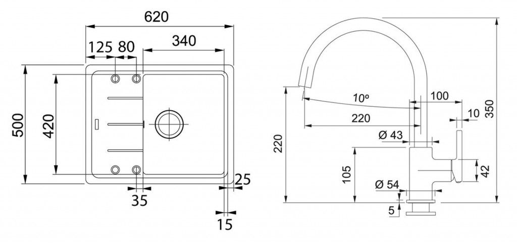 - odkvapkávacia plocha variabilná, možno umiestniť vpravo aj vľavo