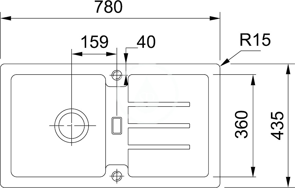 set G90 Fragranitový drez Strata STG 614-78, pre horný montáž materiál Fragranit + povrchová úprava Sanitized® spodná skrinka od 500 mm rozmery: 780 x 435 mm výrez: 760 x 415 mm (rádius 20 mm) drezy: 333 x 360 x 165 mm reverzibilné drez, odkvapkávac… (celý popis)