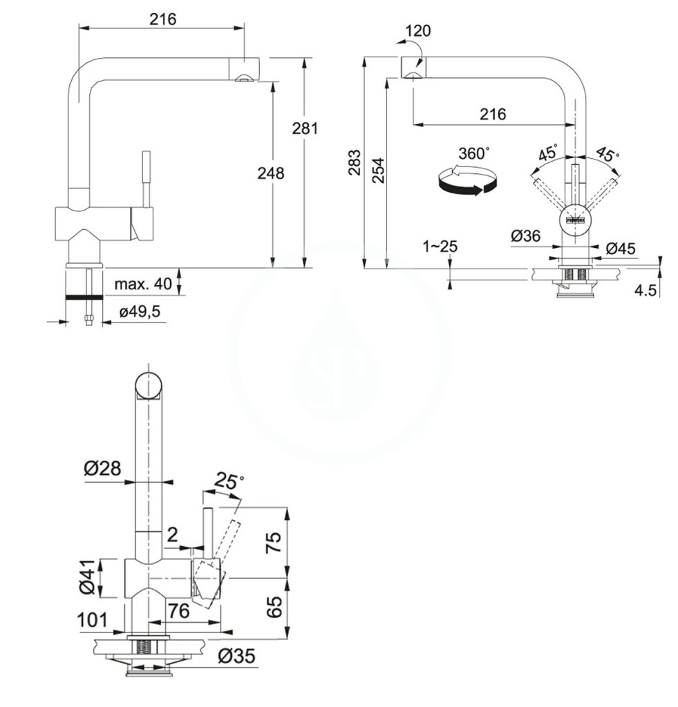 - odkvapkávacia plochu možno umiestniť vpravo i vľavo