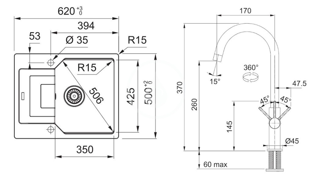- reverzibilné, odkvapkávacia plochu možno umiestniť vľavo alebo vpravo