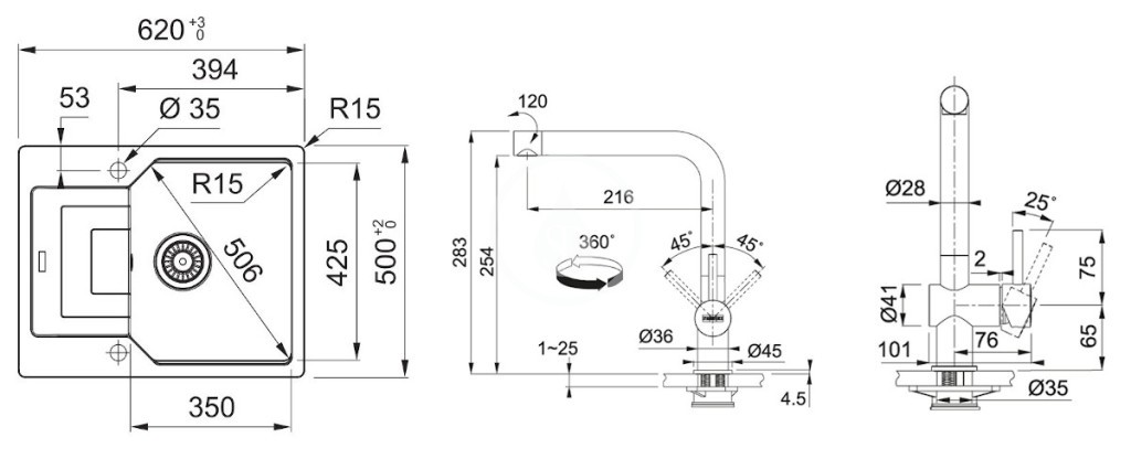 FRANKE - - Sety Set G180, fragranitový drez UBG 611-62 a batéria SAMOA, biela-led/chróm (114.0619.646)