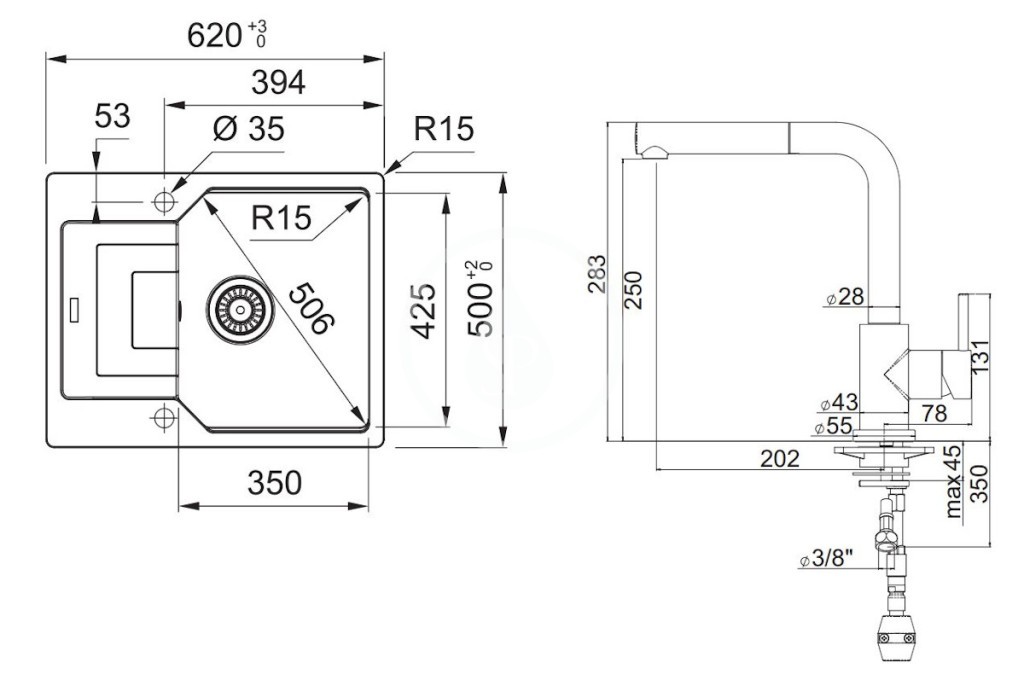 • reverzibilné, odkvapkávacia plochu možno umiestniť vľavo alebo vpravo