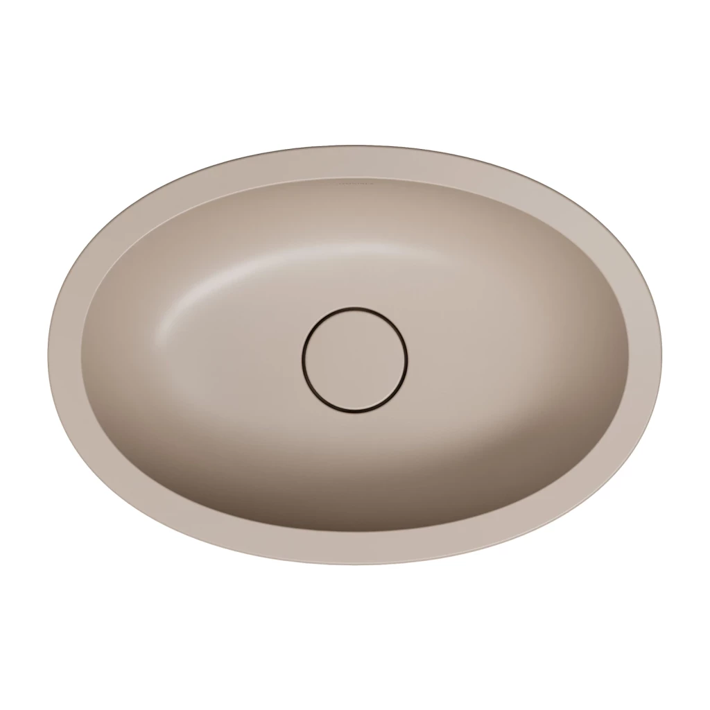 Umývadlo SHELL v odtieni dune beige (RAL1019) je v tlmenom, zemito béžovom odtieni so zamatovo hebkým matným povrchom.