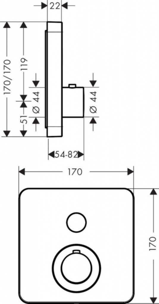 - vrchná sada obsahuje: rukoväť, objímku, kovovú rozetu, miešaciu jednotku, tlačidlá