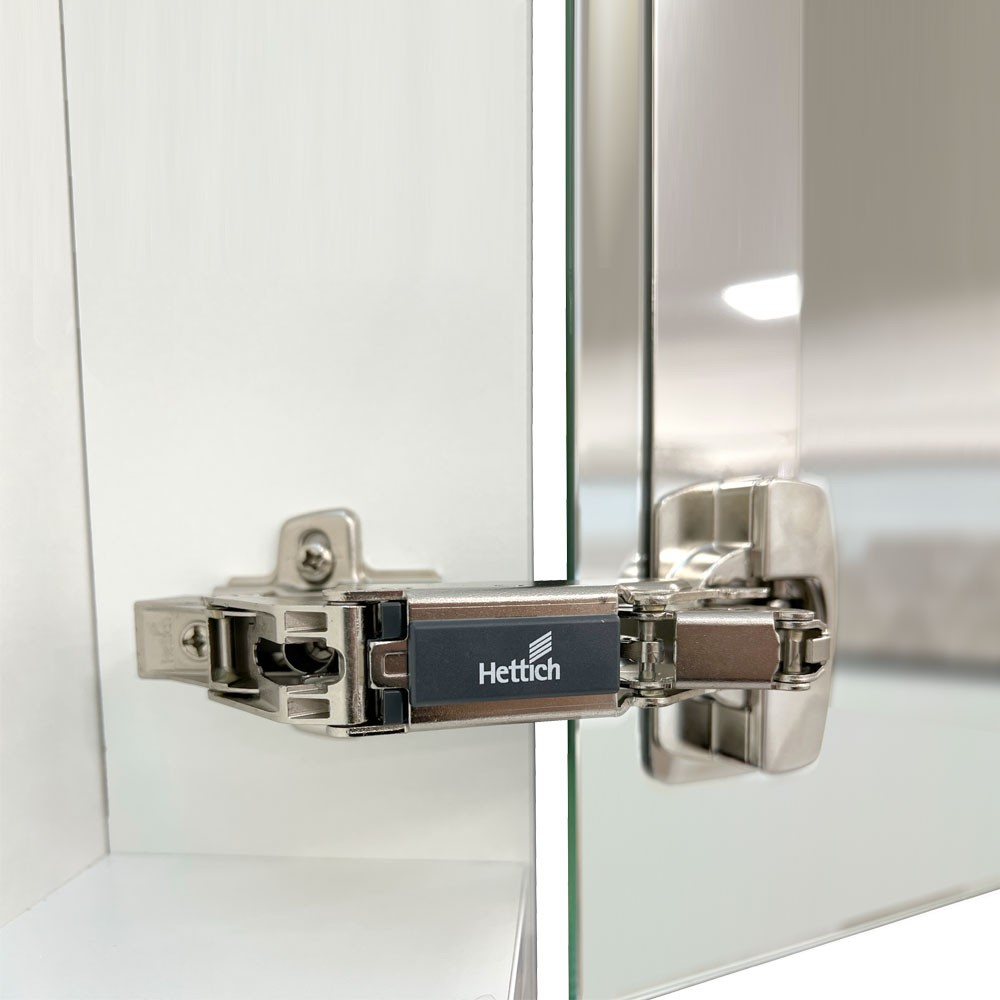 Nad dvierkami sa nachádza elegantne zabudované LED osvetlenie, ktoré spoľahlivo osvetlí priestor pred zrkadlom – ideálne na líčenie, holenie či každodennú starostlivosť o pleť.