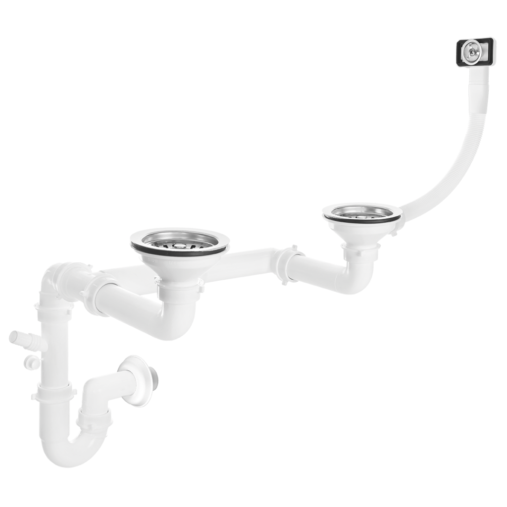 Sifón 2 x 3,5" s prepadom pre dvojitý drez je efektívnym a spoľahlivým riešením pre tých, ktorí hľadajú efektívny odtokový systém pre dvojitý drez. Je vybavený prepadom, ktorý zaisťuje správnu cirkuláciu vody a zabraňuje pretečeniu. Vďaka svojej pevnej konštrukcii z materiálov odolných voči vlhkosti sifón zaručuje dlhodobú funkčnosť a jednoduchú inštaláciu.