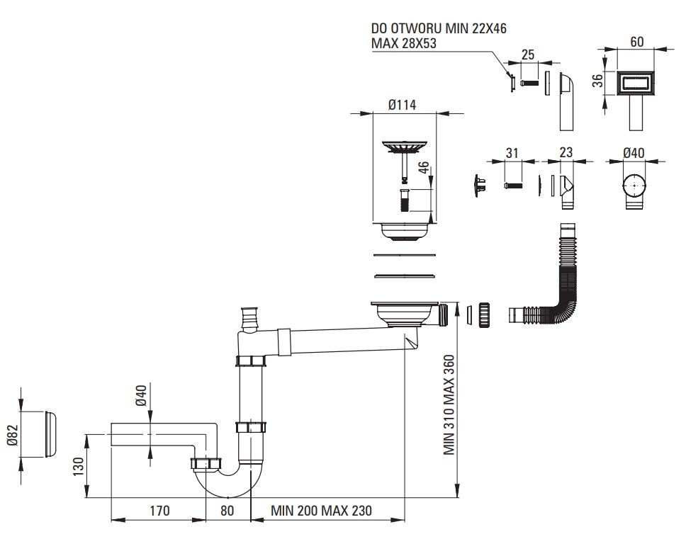 - priestorovo úsporný sifón pre uľahčenie napr. triedenie odpadu