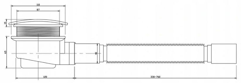 Flexibilný sifón pre sprchové vaničky s možnosťou čistenia zhora, odnímateľným lapačom nečistôt a možnosťou natiahnutia trubice podľa potreby.