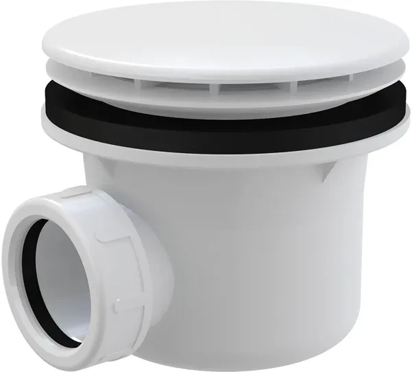 Alcadrain Sifón vaničkový, biela A49B; Vlastnosti: Plne čistiteľný až po odpadové potrubie; Stavebná výška 84 mm; Odpad je možné pripojiť pomocou kolená A52; Materiál: polypropylén, tepelne a chemicky odolný; Použitie: Pre odtok vody zo sprchových vaničiek; Pre sprchové vaničky s odtokovým otvorom 90 mm; Pre sprchové vaničky bez prepadu; Technické parametre: Zápachová uzávera 50 mm; Prietok 43 l / min; Tepelný atest 95 st.C; Rozsah dodávky: Telo sifónu; Biele plastové veko sifónu; montážny set