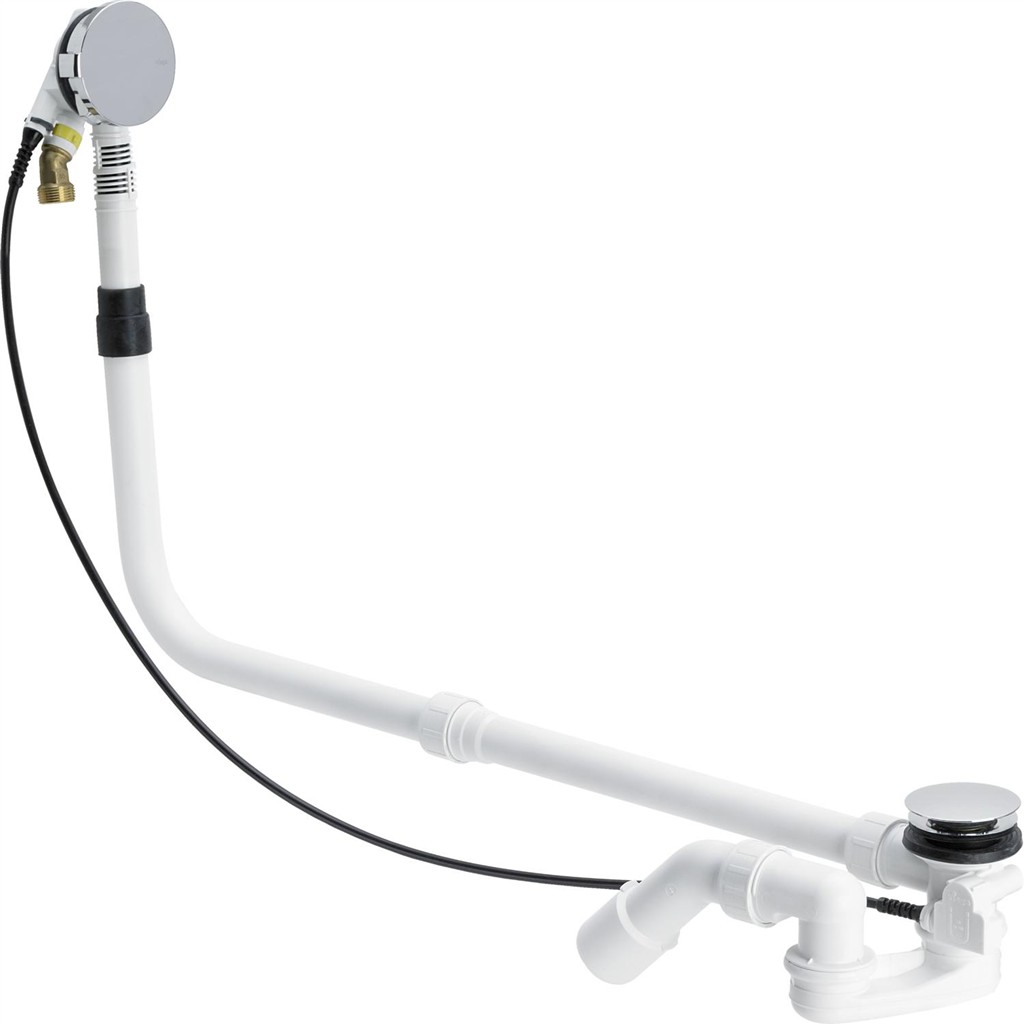 pochromovaná otočná rozeta, pochromovaná kuželka ventilu, pochromovaná krycí rozeta, přítoková příruba, zápachový uzávěr, odtokový oblouk 45°, pochromovaný ventil