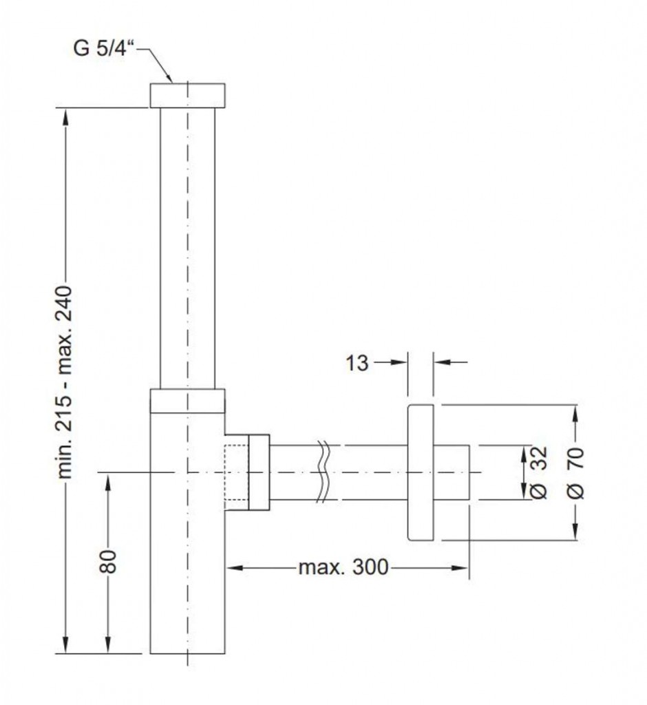 dizajnový umývadlový sifón s prevlečnou maticou G 5/4 ", bez odtokového ventilu, výstup pr. 32 mm, povrch pochrómovaná mosadz