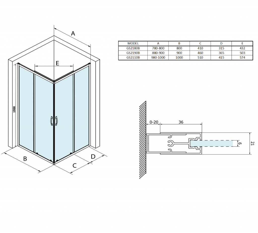 - Štvorcové a obdĺžnikové zásteny s rohovým vstupom vytvoríte spojením dvoch posuvných dverí pre rohový vstup