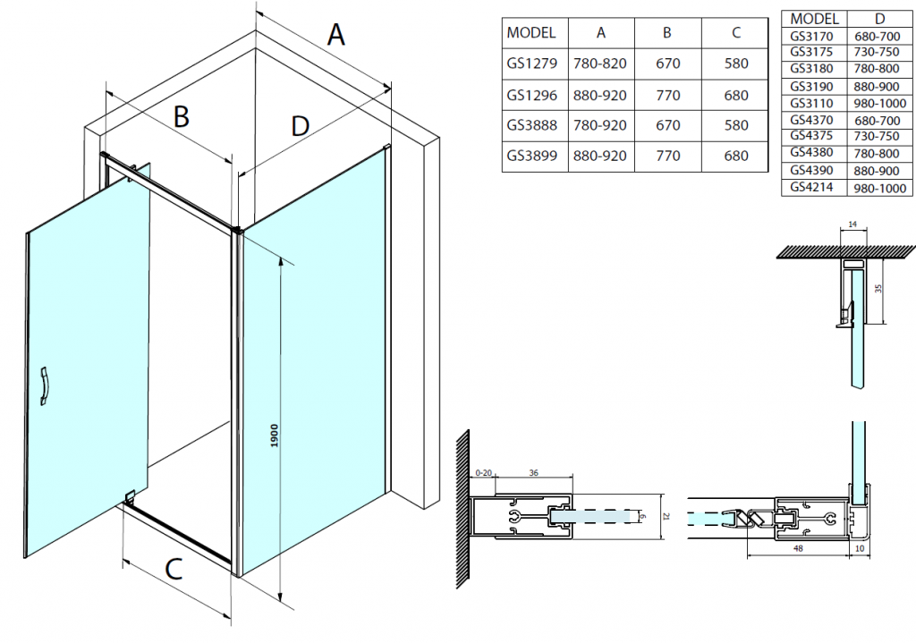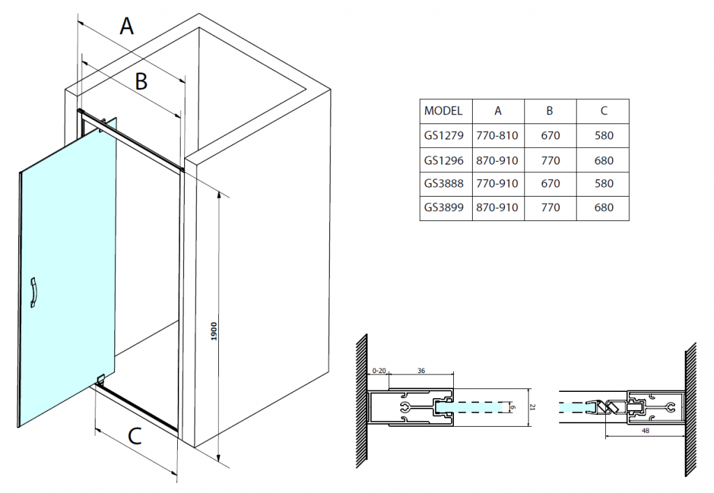 - Kombináciou bočnej steny a dverí získate obdĺžnikovú / štvorcovú zástenu - na výber dvere posuvné a pivotové