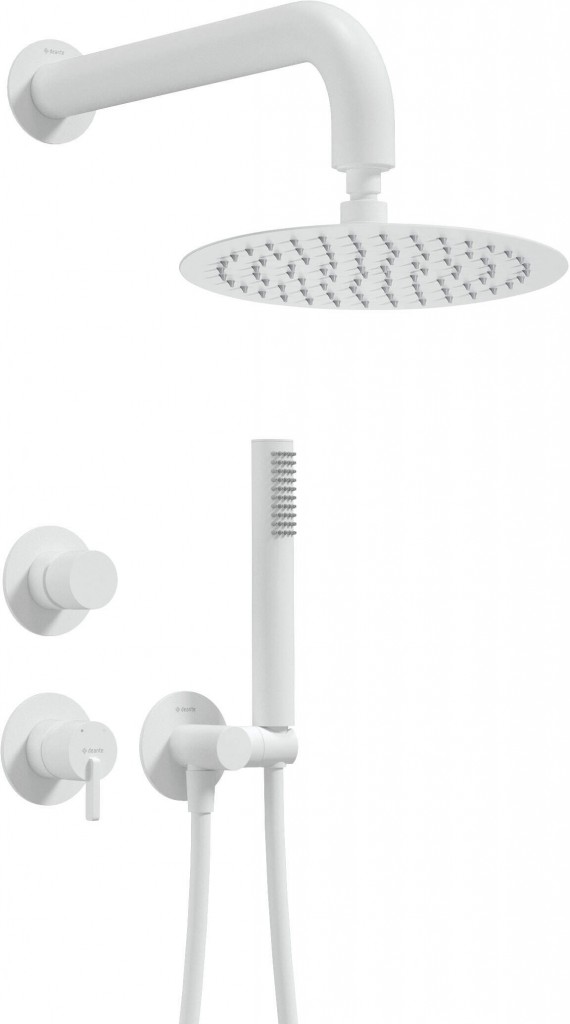 Sprchový set pod omietku má všetky potrebné prvky na vybavenie sprchy. Vysoká kvalita použitých materiálov mnohokrát testovaných v laboratórnych podmienkach zaisťuje bezporuchovú prevádzku. Inovatívny dizajn a elegantná povrchová úprava priťahujú pozornosť a podomietková inštalácia opticky zväčšuje priestor. Klasické riešenie umožňuje získať priestor napríklad pre prídavnú policu na kozmetiku alebo vešiak. Vďaka tomu môžete ľahšie a rýchlejšie upratať celú miestnosť. Verzia so sprchovou hlavicou. Urobte si pohodlie v sprche.