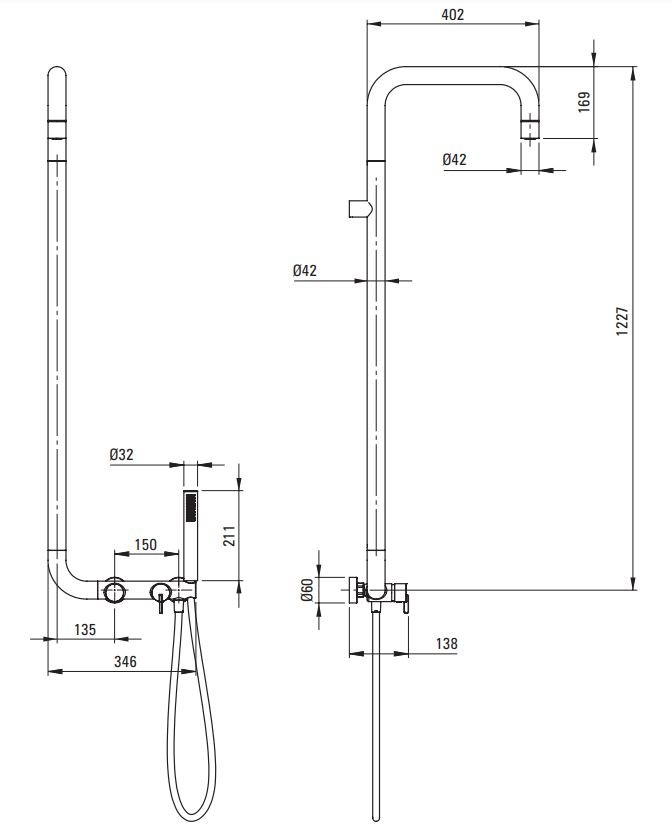 - plastová hadica o dĺžke 150 cm so systémom Anti-Twist , ktorý zabraňuje krúteniu