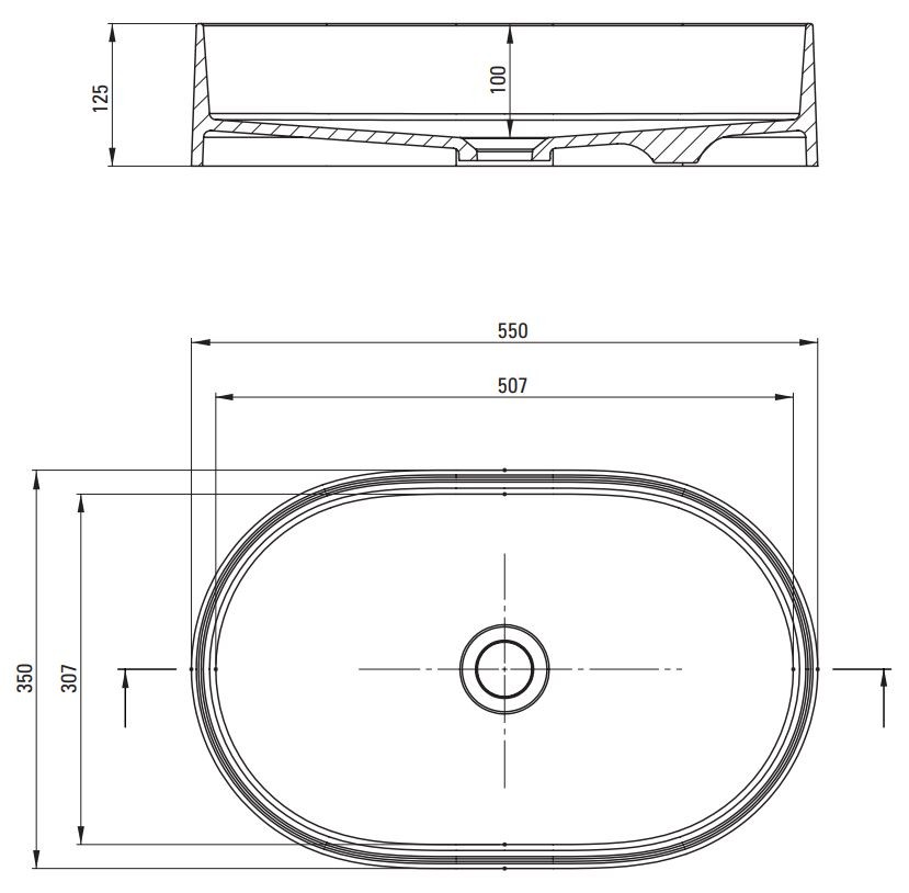 Samotné umývadlo na dosku je široké 55 cm, hlboké 35 cm a na výšku má 12,5 cm , čo nabáda k tomu, že je možnosť umiestnenia dvoch umývadiel vedľa seba /pokiaľ vám priestor dovolí/. Umývadlo nemá bezpečnostný prepad ani otvor pre batériu . Preto k nemu vyberajte vysokú umývadlovú batériu alebo podomietkovú umývadlovú batériu . Dôležité je vybrať správnu výpusť. Vhodná je univerzálna alebo určená pre umývadlá bez prepadu.