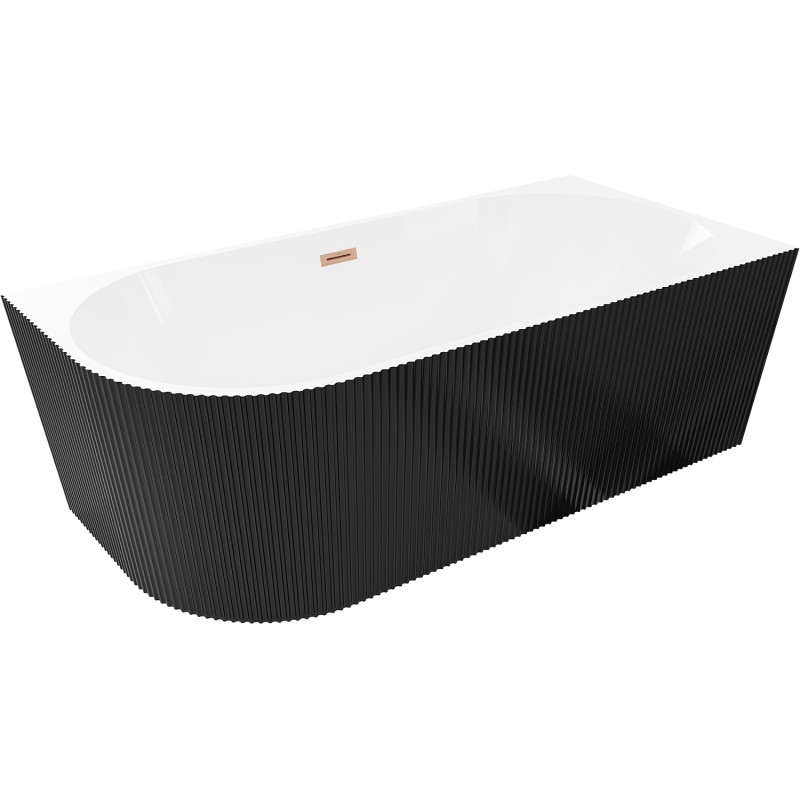 Špecifikácia produktu: Rozmer: 150 x 75 cm Výška: 58 cm Hĺbka: 42,5 cm Montáž: Rohová, Ľavá Materiál: Sanitárny akrylát Farba: Biela / Čierna Povrchová úprava: Kartáčovaná meď Konštrukcia: Drážkovaná Otvor pre prepad: Áno Otvor pre batériu: Nie Otvor pre batériu: Nie batériu, batériu a UV žiarenie