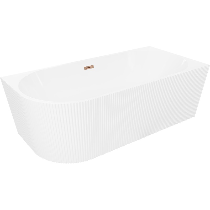 Špecifikácia produktu: Rozmer: 150 x 75 cm Výška: 58 cm Hĺbka: 42,5 cm Montáž: Rohová, Ľavá Materiál: Sanitárny akrylát Farba: Biela Povrchová úprava: Ružové zlato Štruktúra: Drážkovaná Otvor na prepad: Áno Otvor na batériu: Nie Sifón a zátka batériu a UV žiarenie