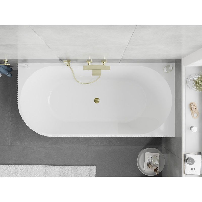 Špecifikácia produktu: Rozmer: 150 x 75 cm Výška: 58 cm Hĺbka: 42,5 cm Montáž: Rohová, Ľavá Materiál: Sanitárny akrylát Farba: Biela Povrchová úprava: Zlatá Štruktúra: Drážkovaná Otvor pre prepad: Áno Otvor pre batériu: Nie Sifón a zátka click batériu a UV žiarenie