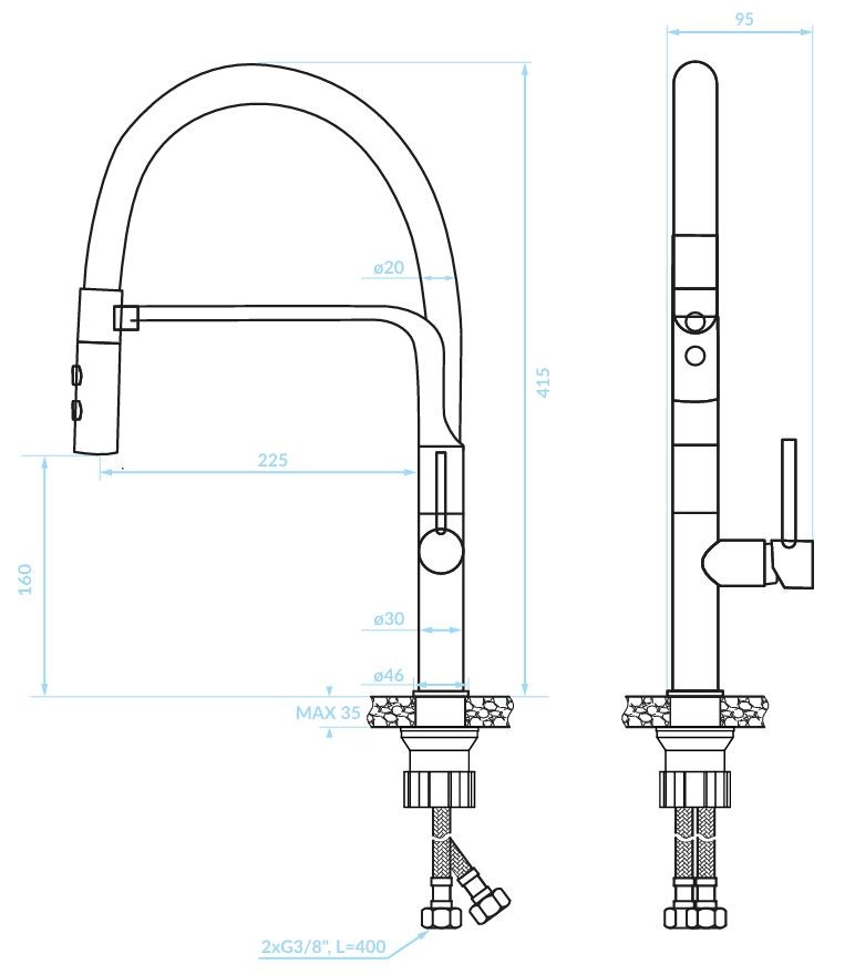 Kľúčovým prvkom je flexibilný výtok s magnetickým uchytením , ktorý zaisťuje pohodlnú manipuláciu a presné smerovanie prúdu vody. Ideálne je na plnenie veľkých hrncov, umývanie ovocia i zeleniny alebo upratovanie drezu.
