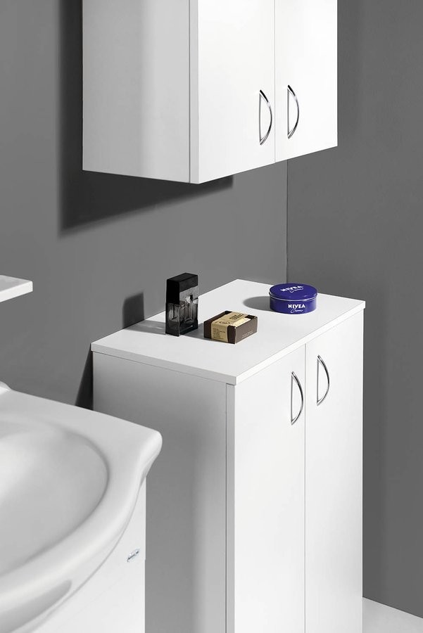 Kúpeľňový nábytok z bieleho lamina, najjednoduchšie riešenie pre Vašu kúpeľňu. Ponuka umývadlových skriniek v 4 rozmeroch v šírkach od 50 cm do 65 cm v kombinácii s niekoľkými variantmi doplnkových skriniek ponúka priaznivé usporiadanie nábytku takmer do každej kúpeľne za najlepšiu cenu..