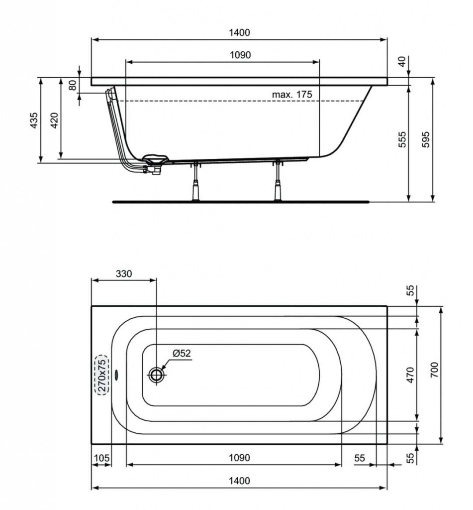 Obdĺžniková vaňa k obloženie alebo na inštaláciu s panelmi