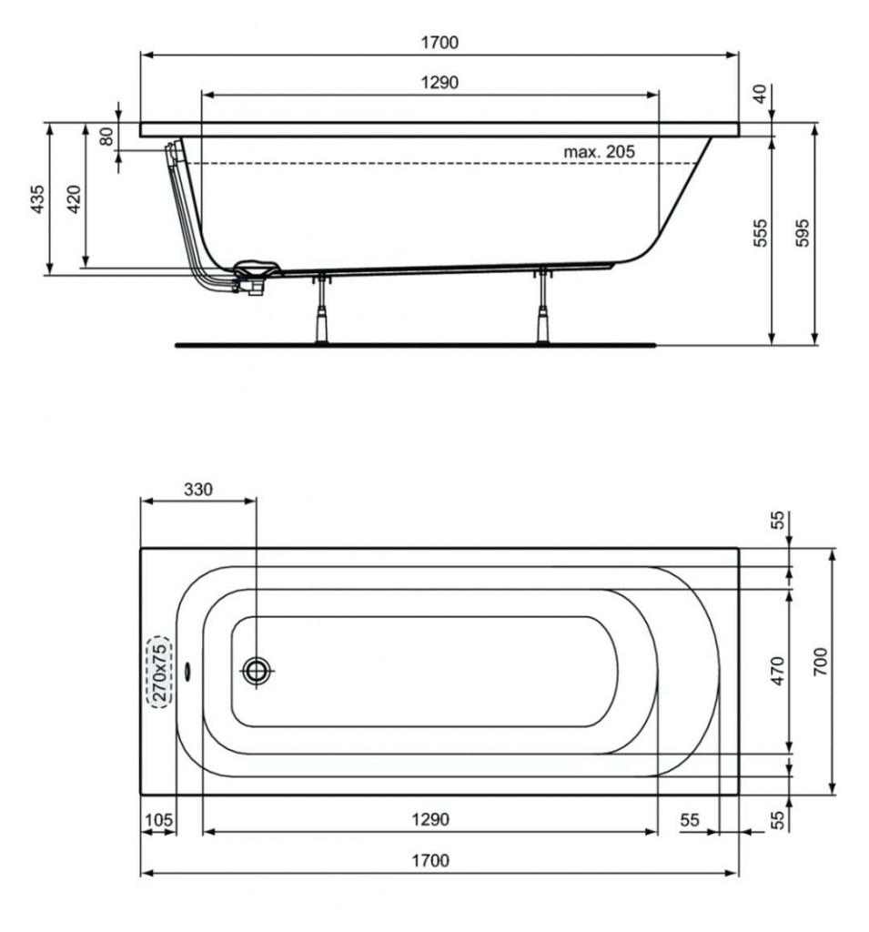 Obdĺžniková vaňa k obloženie alebo na inštaláciu s panelmi