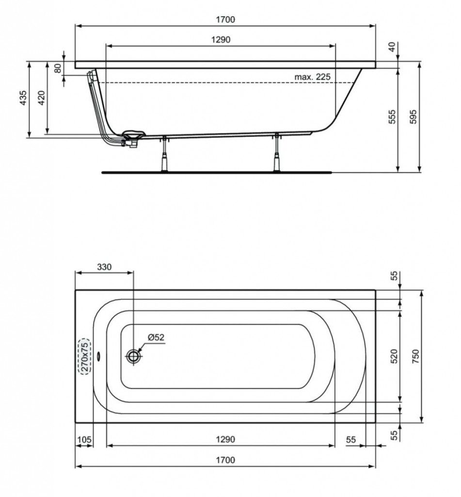 Obdĺžniková vaňa k obloženie alebo na inštaláciu s panelmi