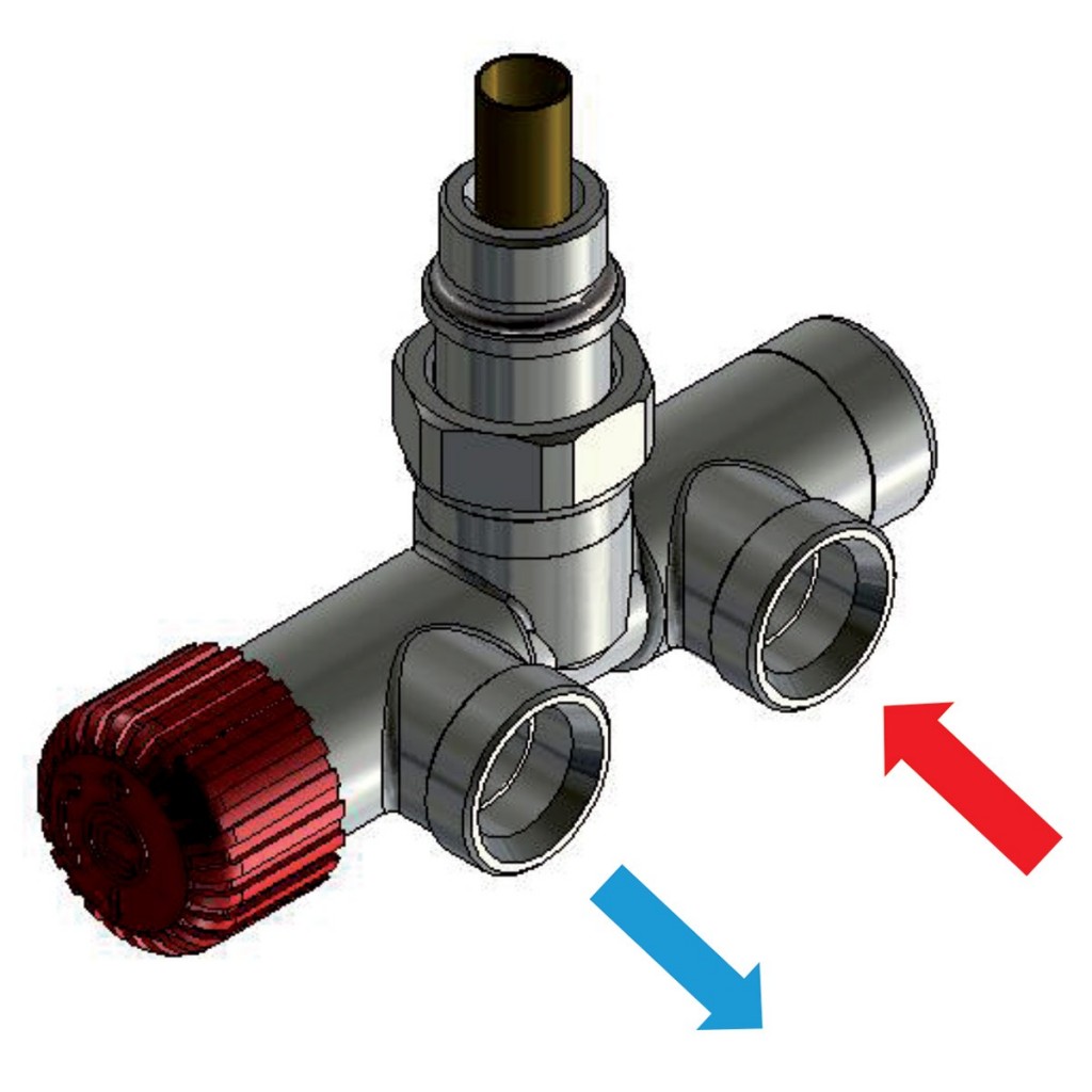 Ventil je určený na pripojenie radiátorov na rozvody TÚV s vývodom zo steny. Nie je možné kombinovať s elektrickou vykurovacou tyčou.