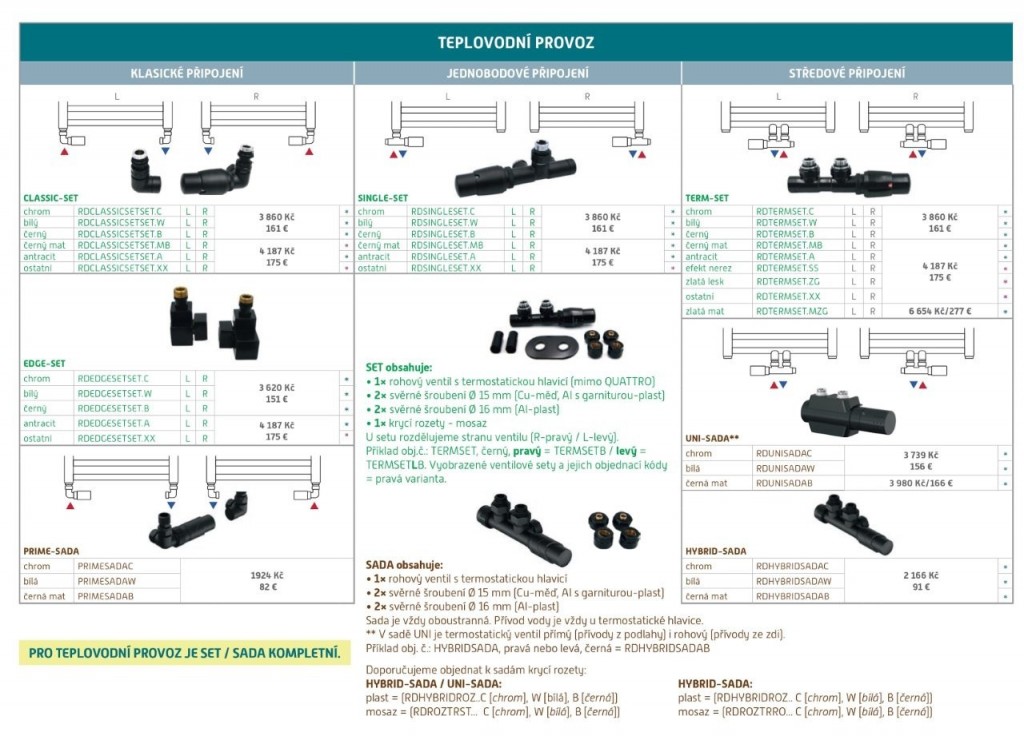 Jednobodový pripojovací ventil SINGLE-SET (Z7) je určený pre vykurovacie telesá s 1-bodovým pripojením s rozstupom 50 mm a závitom 1/2 alebo 3/4“ , najmä pre kúpeľňové telesá – tzn. rebríky . Garnitúra, termostatická hlavica aj kompletné príslušenstvo je k dispozícii v 17-tich rôznych farbách vždy s veľmi kvalitnou povrchovou úpravou. Ventily dodávame vrátane zverného šróbenia na Cu aj na PEX-AL-PEX.