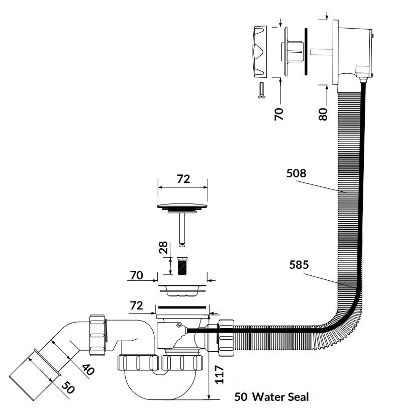 Univerzálny automatický vaňový sifón s prepadom. Je vhodným riešením na odvod vody do všetkých vstavaných vaní Cersanit.