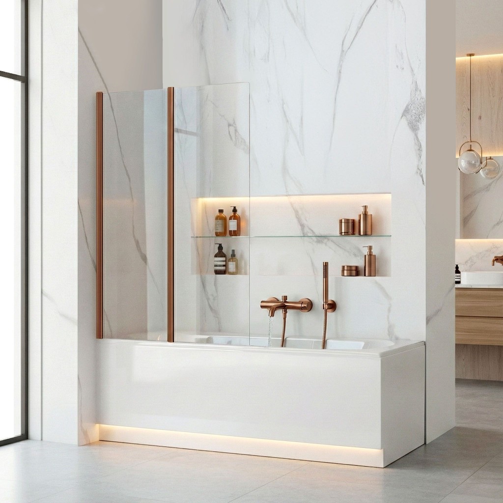 Objavte nový rozmer komfortu pri kúpeli s vaničkovou zástenou Rea Agat 100 v jedinečnom prevedení kartáčovanej medi. Skvelá voľba pre tých, ktorí chcú spojiť výhody vane a sprchy bez toho, aby sa vzdali elegantného dizajnu. Odolné spracovanie a moderná estetika dodajú vašej kúpeľni luxusný a jedinečný charakter. vode. Dve sklenené tabule – zaisťujú stabilitu a pohodlie pri každodennom používaní. Kompaktná konštrukcia – ideálna voľba aj pre menšie kúpeľne. Rozhodnutím pre zástenu Rea Agat 100 získate produkt, ktorý spája funkčnosť a dekoratívnu hodnotu. Vďaka možnosti zloženia k stene získate viac priestoru a voľnosti, keď sprchu nepoužívate. Kvalita REA zaručuje dlhú životnosť a komfort, aby ste si mohli užívať relaxačné kúpele bez obáv z mokrej podlahy.
