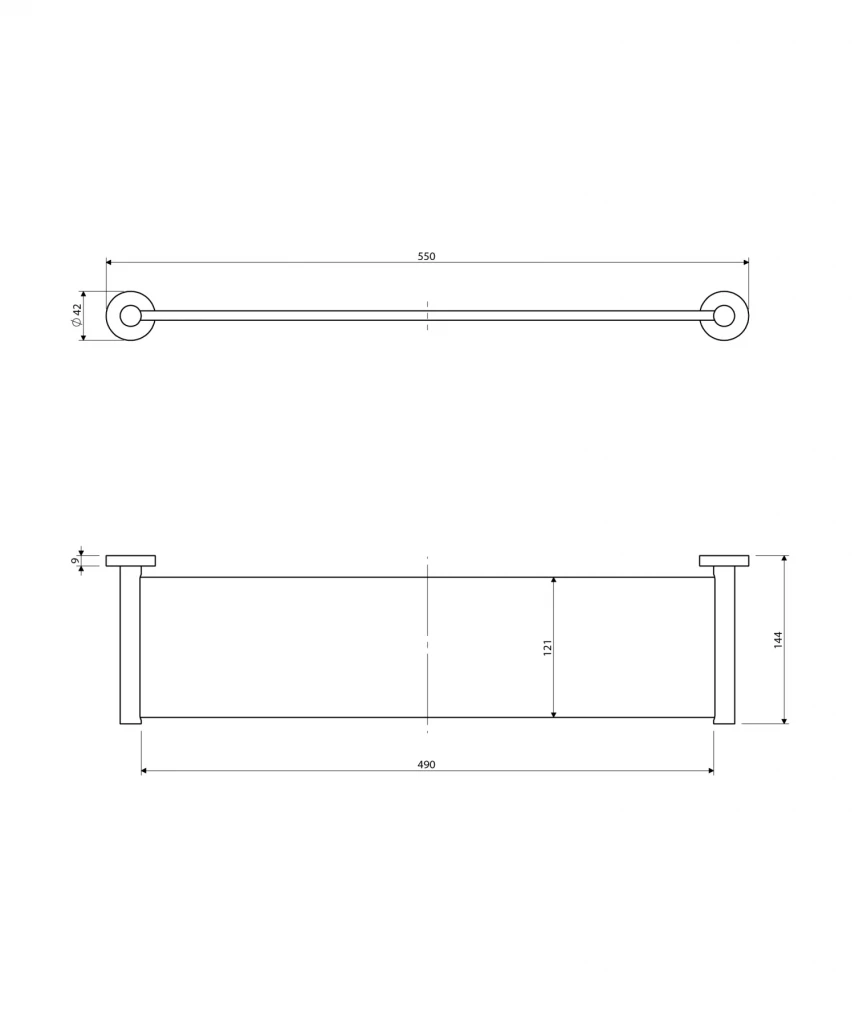 - šírka: 55 cm, výška: 4,2 cm, vzdialenosť od steny: 14,4 cm