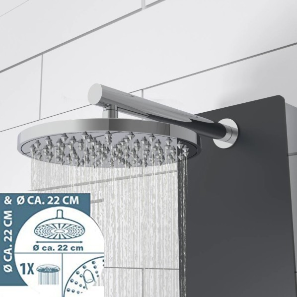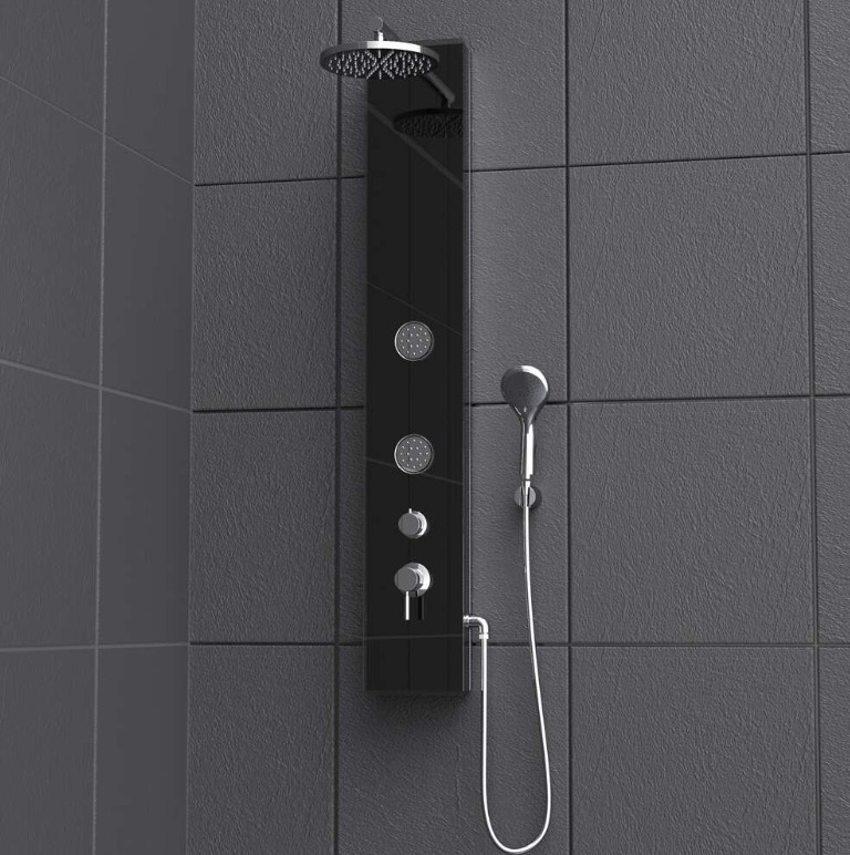 Elegantný sprchový panel zo skla v antracitovom prevedení spája moderný design, komfort a praktickú funkčnosť. Vďaka kvalitnému materiálu a precíznemu spracovaniu je ideálnou voľbou pre každú kúpeľňu.