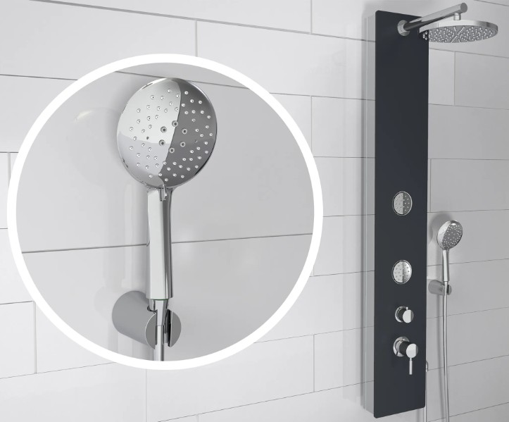 Panel je vybavený 2 masážnymi tryskami a 3cestným nastavením , ktoré umožňuje voliť medzi hornou sprchou, ručnou sprchou a masážnymi tryskami podľa vašich potrieb. Trysky sú chránené proti vodnému kameňu, čo zaisťuje ľahkú údržbu a dlhodobý výkon.
