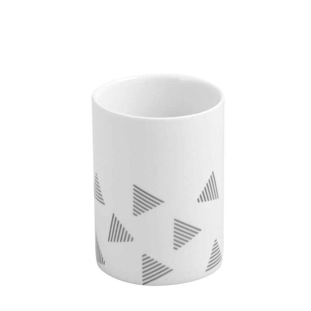 Pohárik vyrobený z porcelánu - séria VALENTINO. Biela farba s motívom čiernych pruhovaných trojuholníkov.