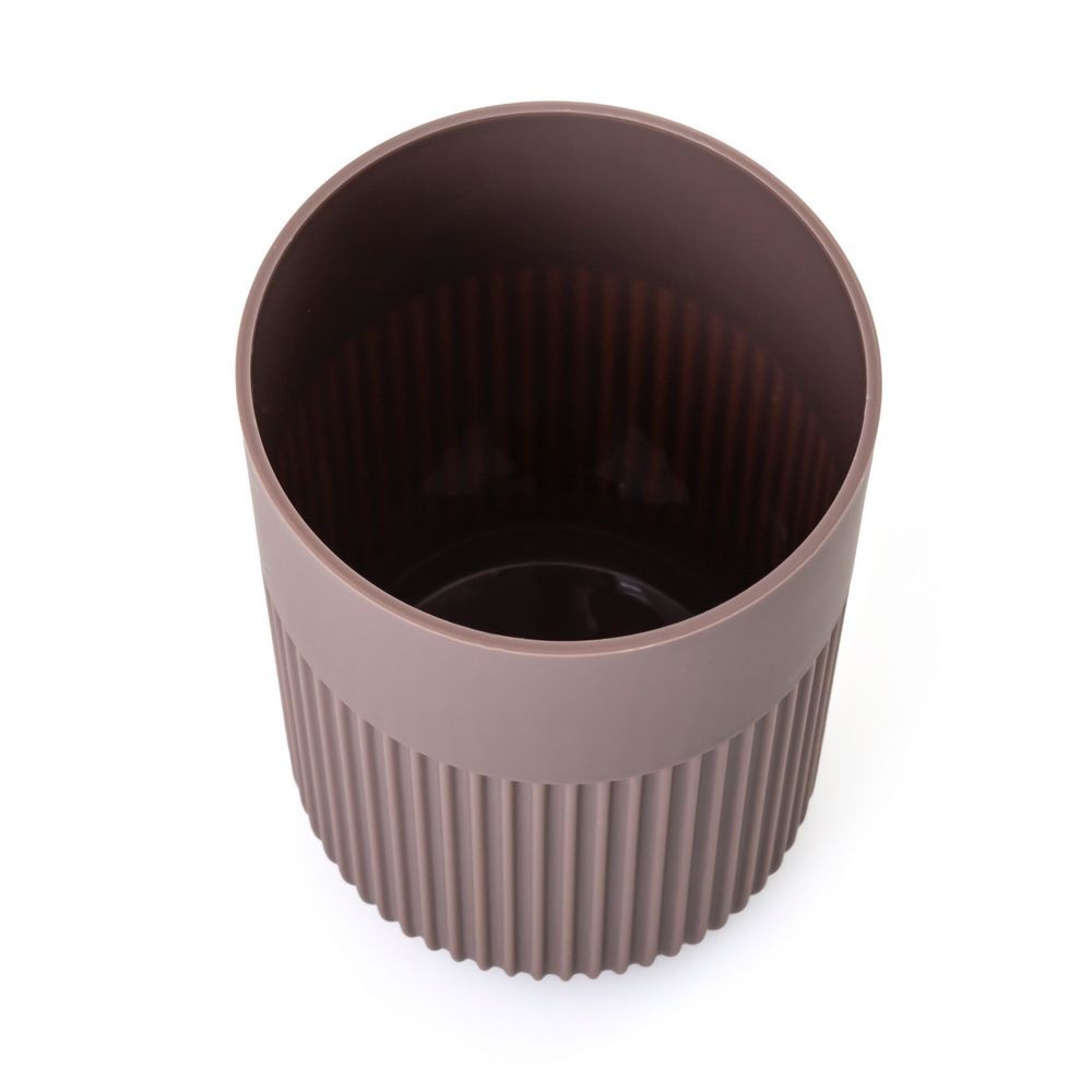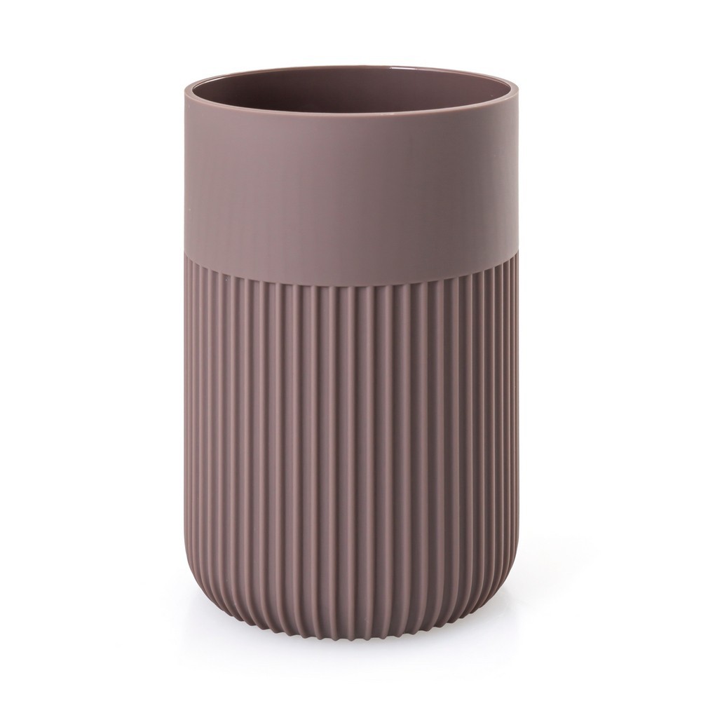 Stojan na zubné kefky zo série Loreto v mimoriadnej tlmenej slivkovo fialovej farbe je skutočnou ozdobou kúpeľne. Vyrobené z matného plastu, má elegantný vzhľad a vďaka ozdobným drážkam je mimoriadne estetické. Objem 350 ml, umožňuje pohodlné skladovanie zubných kefiek a zubnej pasty. Pre svoju univerzálnosť však môže poslúžiť aj ako elegantná nádoba na ďalšie kozmetické doplnky, ako sú štetce na makeup alebo riasenka.