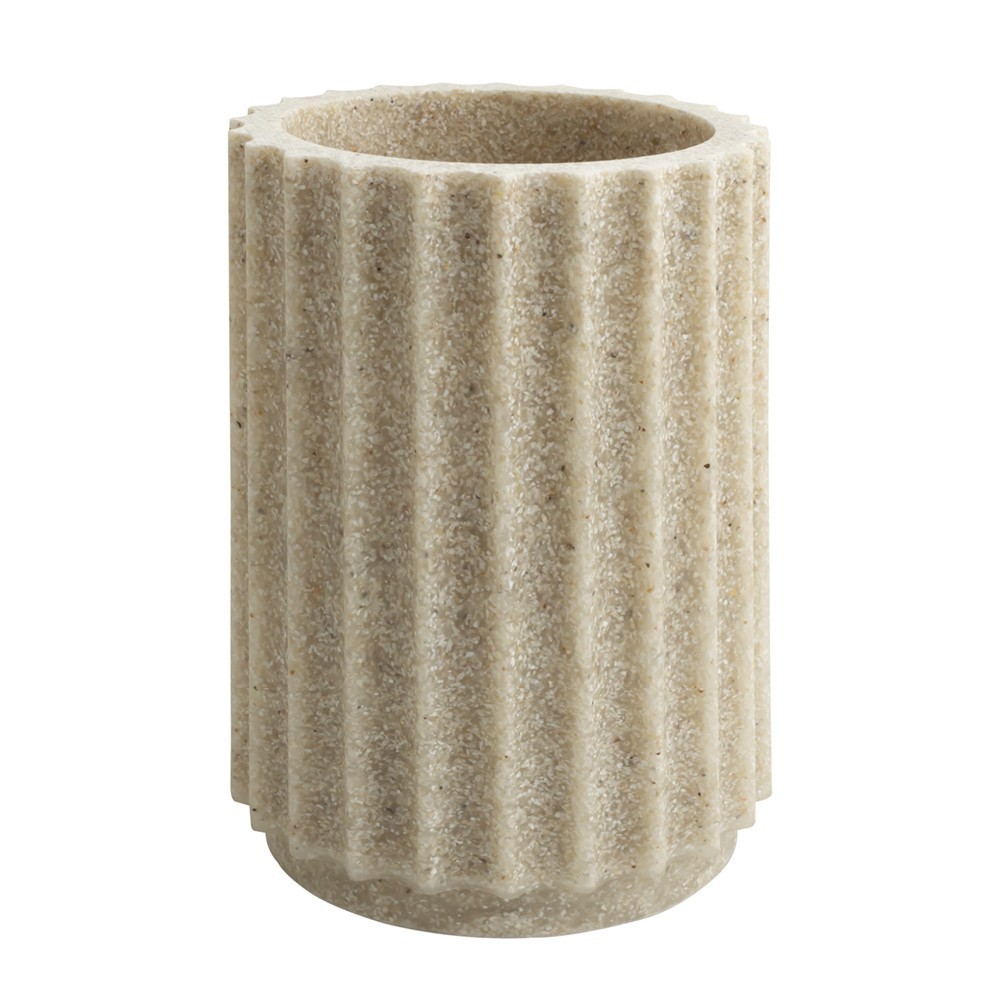 Kúpeľňový pohár zo série SORRA. Je vyrobená z kvalitného polyresinu, ktorý si po dlhú dobu zachováva perfektný vzhľad. Pohárik je masívny a stabilný, takže sa neprevrhne, keď do nej dáte zubnú pastu alebo elektrickú zubnú kefku.