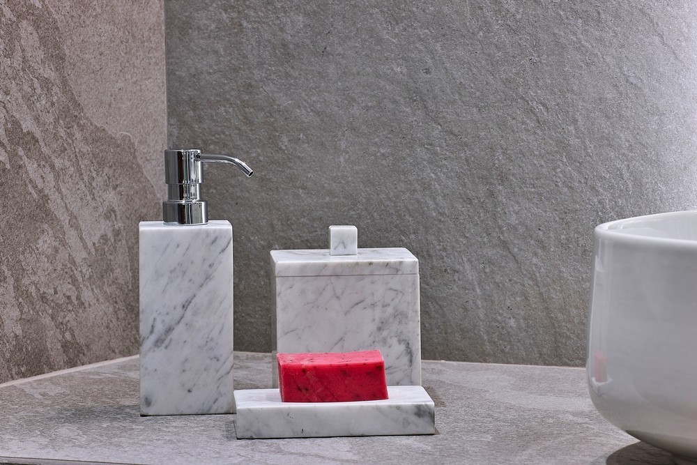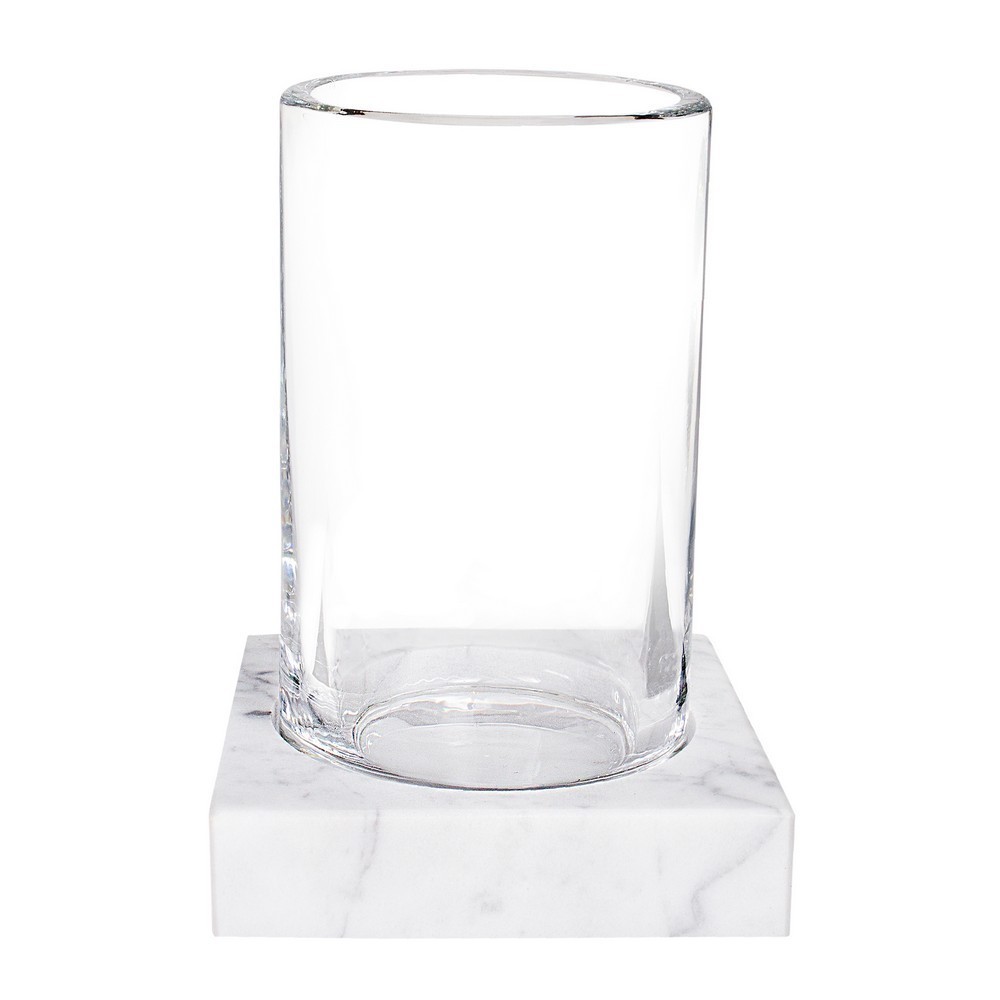 Sklenený hrnček s mramorovým podstavcom je jedným z prvkov jedinečnej kolekcie kúpeľňových doplnkov Q-BATH. Bezkonkurenčná kvalita použitého kameňa a jedinečný a klasický dizajn z neho robí jeden z najkrajších prvkov kamennej kolekcie. Priehľadnosť skla v kombinácii s bielymi a šedými odtieňmi mramoru tvorí moderné duo. Tento hrnček je ideálnym produktom na uloženie kozmetiky alebo zubných kefiek. Stane sa aj štýlovým doplnkom každého toaletného stolíka. Výrobky z prírodného kameňa sa môžu líšiť farbou, odtieňom, vzorom a štruktúrou. V závislosti od povahy kamenného bloku, z ktorého je kameň brúsený, môžu existovať rozdiely v prevládajúcej farbe daného výrobku. Vzor na prírodnom kameni je jedinečný.