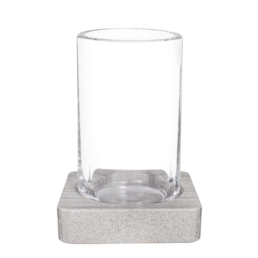 Sklenený hrnček s mramorovým podstavcom je jedným z kúpeľňových doplnkov Q-BATH z unikátneho radu Pure Natural. Bezkonkurenčná kvalita použitého kameňa a jedinečný a klasický dizajn z neho robí jeden z najkrajších prvkov kamennej kolekcie. Priehľadnosť skla, rovnako ako celá paleta šedej obsiahnutej v štruktúre kameňa, tvorí moderné duo. Tento hrnček je ideálnym produktom na uloženie kozmetiky alebo zubných kefiek. Stane sa aj štýlovým doplnkom každého toaletného stolíka. Tento produkt splní očakávania najvycibrejšej chuti. Výrobky z prírodného kameňa sa môžu líšiť farbou, odtieňom, vzorom a štruktúrou. V závislosti od povahy kamenného bloku, z ktorého je kameň brúsený, môžu existovať rozdiely v prevládajúcej farbe daného výrobku. Vzor na prírodnom kameni je jedinečný.