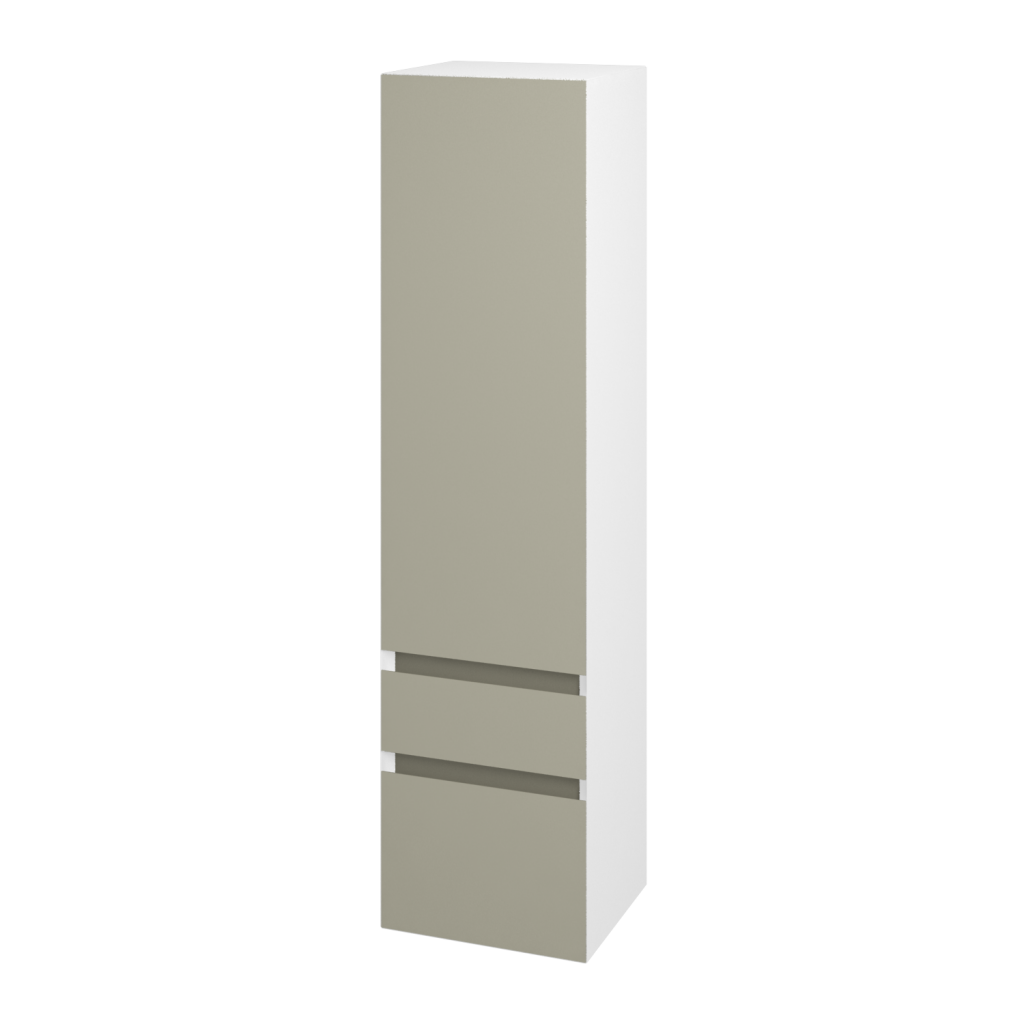 Vysoká kúpeľňová skriňa patrí do exkluzívnej kolekcie nábytku , ktorá se vyznačuje elegantným a premysleným dizajnom. Na skrini vás oslovia predovšetkým skosené hrany dvierok do uhlu 45°a čiel zásuviek alebo lakovanie aj vnútorných priestorov.