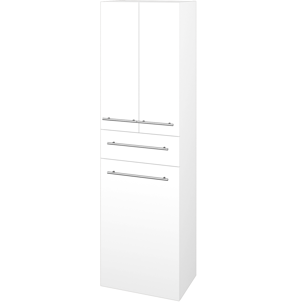Objemný úložný priestor, kombinovaný s priestorom na špinavú bielizeň, poskytuje vysoká doplnková skriňa DOS SVD3ZK 50. Pohodlne v nej uložíte všetko potrebné. Od malých drobností do praktickej zásuvky, až po väčšie predmety ako osušky, pracie prášky a pod.