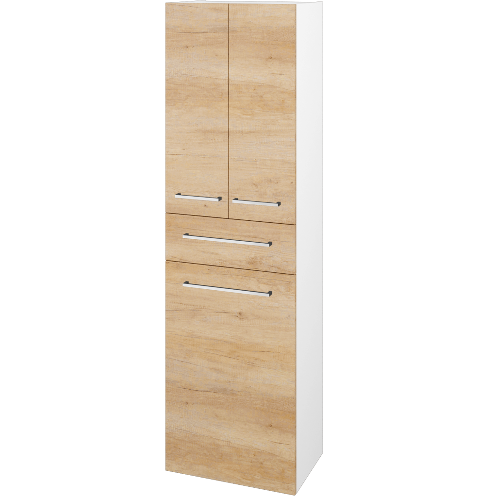 Objemný úložný priestor, kombinovaný s priestorom na špinavú bielizeň, poskytuje vysoká doplnková skriňa DOS SVD3ZK 50. Pohodlne v nej uložíte všetko potrebné. Od malých drobností do praktickej zásuvky, až po väčšie predmety ako osušky, pracie prášky a pod.
