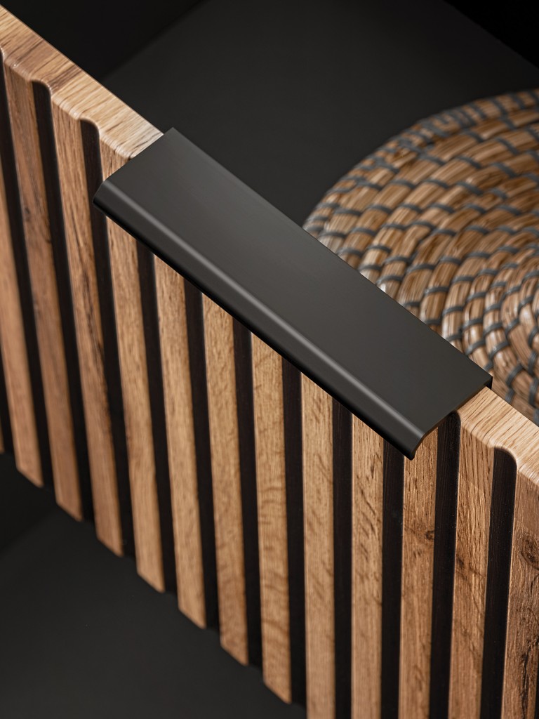 Kompaktná skrinka pod malé umývadlo, ideálna do menších kúpeľní alebo toaliet. Kombinácia prírodného dekoru duba so šedým akcentom dodáva moderný vzhľad.